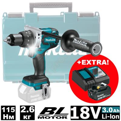 Аккум. дрель-шуруповерт MAKITA DDF 481 RF в чем. (18.0 В, 1 акк., 3.0 А/ч Li-Ion, 2 скор., 115 Нм, шурупы до 10 мм)