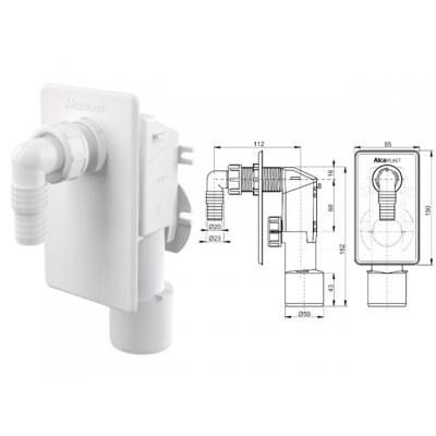 Сифон для стиральной машины под штукатурку, белый, Alcaplast