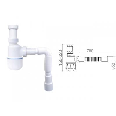 Сифон для умывальника с выпуском 70мм,с отводом для стиральной машины,с гибкой трубой 1 1/2"-40/50мм (NOVA)