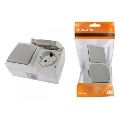 Блок комбинированный (горизонтальный) выключатель 1-кл. + розетка 2П+З с з/ш БКВР IP54 "Вуокса" TDM