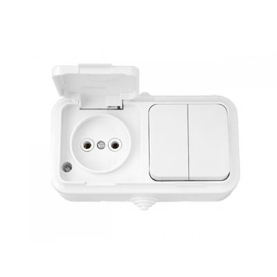 Блок комбинированный (горизонтальный) выключатель 2-кл. + розетка 2П+З с з/ш БКВР IP54 "Вуокса" TDM