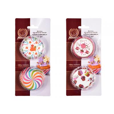 Формы для выпечки кексов, бумажные, "Праздник", 50 шт., 5х3 см, MARMITON (дизайн в ассортименте)
