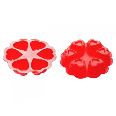 Форма для выпечки, силиконовая, круглая на 6 сердец, 25 х 4.5 см, красная, PERFECTO LINEA