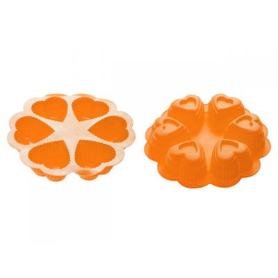 Форма для выпечки, силиконовая, круглая на 6 сердец, 25 х 4.5 см, оранжевая, PERFECTO LINEA