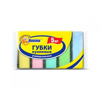Губки кухонные 5 шт DOMI (Состав: поролон-бежевый, фибра- черная. Размер губки: 96х67х39мм)