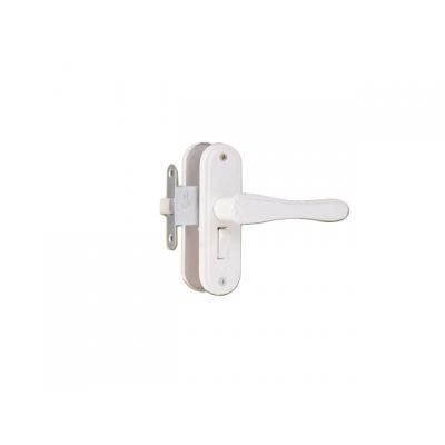 Защелка врезная межкомнатная левая БЕЛАЯ ЗЩ1Д-5-07-09/1.2 (с механизмом дополнительного запирания) (ВОЛМЕТ)