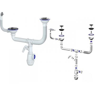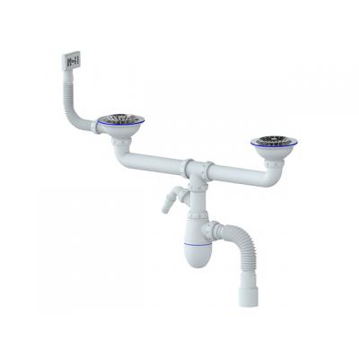 Сифон для кухни с двумя чашками 3 1/2", с переливом, BAKIMAY