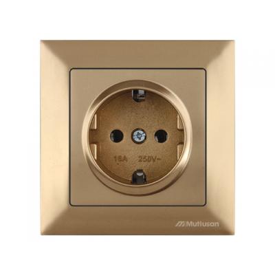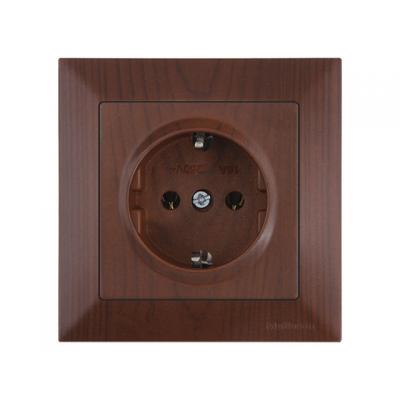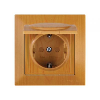 Розетка 1-ая (скрытая, с/з, шторки, с крышкой) дуб, DARIA, MUTLUSAN (16 A, 250 V, IP 20)
