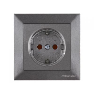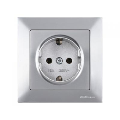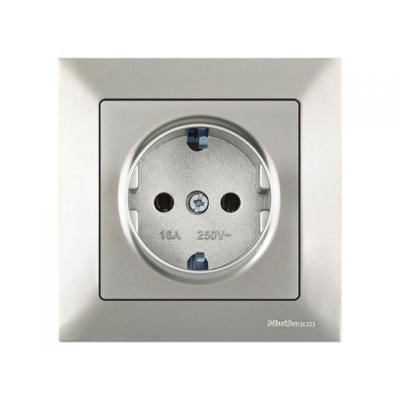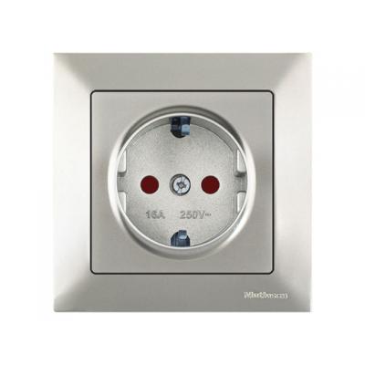 Розетка 1-ая (скрытая, с/з, шторки,с крышкой) серебро, DARIA, MUTLUSAN (16 A, 250 V, IP 20)