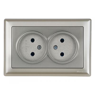 Розетка 2-ая (скрытая, б/з, керамика) дымчатая, DARIA, MUTLUSAN (10 A, 250 V, IP 20)