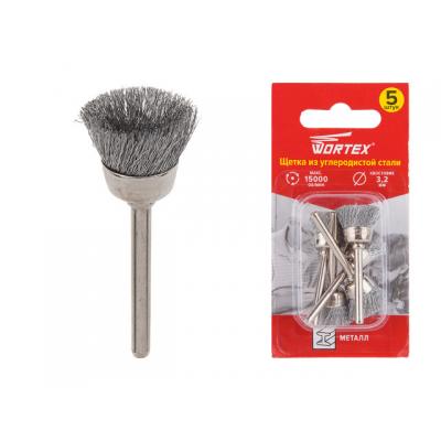 Щетка из углеродистой стали 5 мм WORTEX (раб. диам. 5.0 мм, диам. хвостовика 3.2 мм, 15000 об/мин)