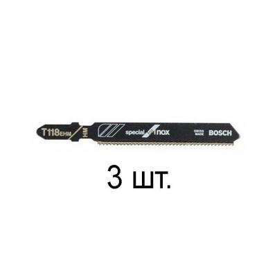 Пилка лобз. по нерж. стали T118EHM (3 шт.) BOSCH (пропил прямой, тонкий, Carbide Technology, шлифованные зубья)