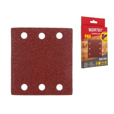 Шлифлист 100х110мм Р60 д/дерева самосцепл. 6 отв. 5 шт. WORTEX (Подходит для использования к виброшлифмашине WORTEX LX SS 1020)