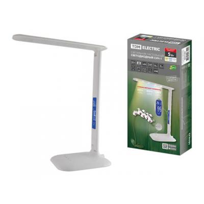 Светильник светодиодный-часы СНЧ-1, сенсор-димм, 5 Вт, 100-240 В, 2800-5500 К, белый TDM (календ., терм-р.,USB)
