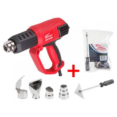Термовоздуходувка WORTEX HG 6020 в кор. + набор сопл 2000 Вт, 2 скор., 450-600 °С (ступенч. рег., 250-500 л/мин)