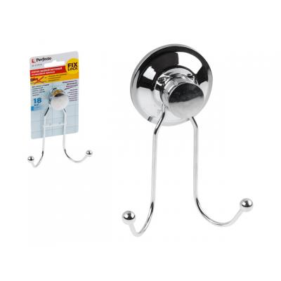 Крючок двойной настенный на вакуумной присоске, хром. сталь, FIX LOCK, PERFECTO LINEA (105x58x90 мм)