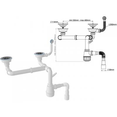 Сифон для кухни с круглым переливом, двойной, выпуски 3 1/2, с гибкой трубой 1 1/2 - 40/50мм, NOVA
