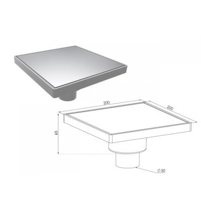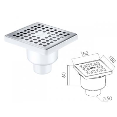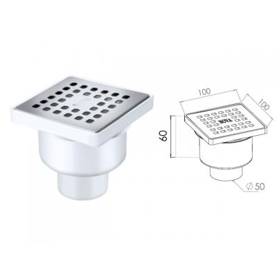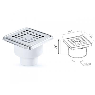 Сливной трап вертикальный D 50 с сухим затвором, с рамкой, решетка нерж. 100х100 мм, NOVA