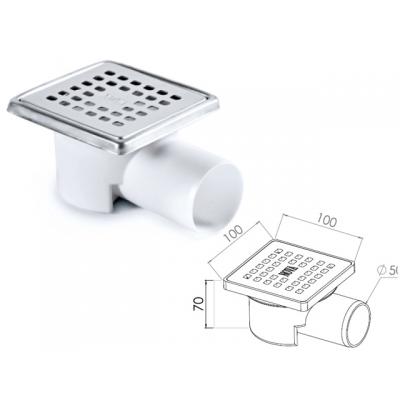 Сливной трап горизонтальный D 50 с сухим затвором, с рамкой, решетка нерж. 100х100 мм, NOVA