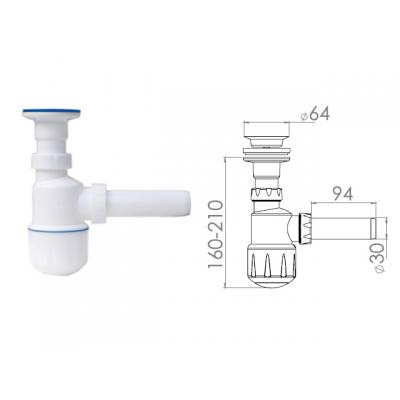 Сифон для умывальника без выпуска, гайка 32 мм, с гибкой трубой 1 1/4"- 40/50мм, NOVA