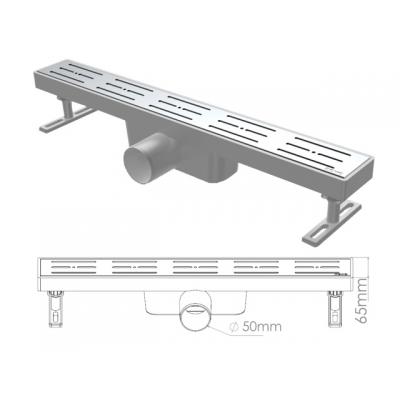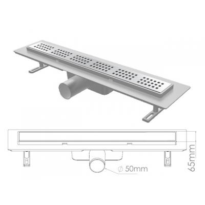 Сливной трап горизонтальный D 50, решетка нерж., 65х900мм, NOVA