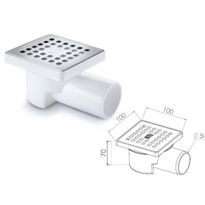Сливной трап горизонтальный D 50, решетка нерж.с площадкой под плитку, 65х600мм, квадрат, NOVA