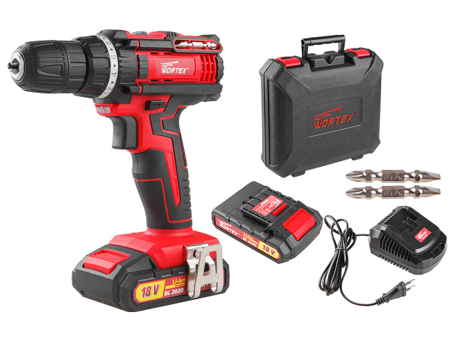 Аккум. дрель-шуруповерт WORTEX BD 2020 DLi в чем. (18.0 В, 2 акк., 2.0 А/ч Li-Ion, 2 скор., 29 Нм, шурупы до 9 мм)