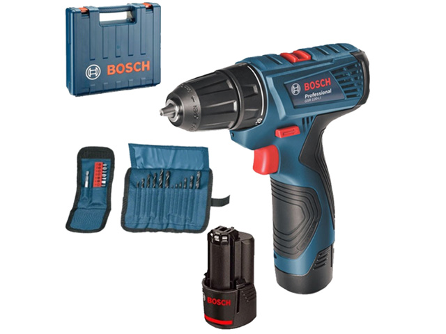 Аккум. дрель-шуруповерт BOSCH GSR 120-LI в чем. + 2 набора сверл и бит (12.0 В, 2 акк., 1.5 А/ч Li-Ion, 2 скор., 30 Нм, шурупы до 7 мм)