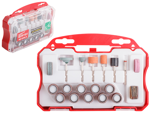 Набор аксессуаров для гравера 40 предметов в боксе ( для шлифовки) (WORTEX)