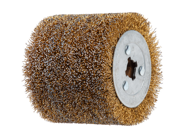 Щетка стальная с латунным покрытием 100х120 мм 0,5 мм WORTEX (диаметр 120 мм, ширина 100 мм, посадочный диаметр 19 мм, проволока 0,5 мм)