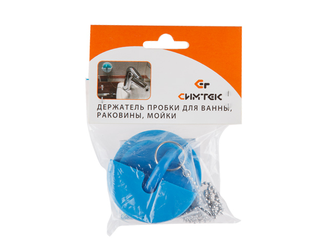 Пробка для ванны (набор), голубой (держатель для пробки - 1шт.,+ пробка с метал. цепочкой - 1шт.) (Симтек)