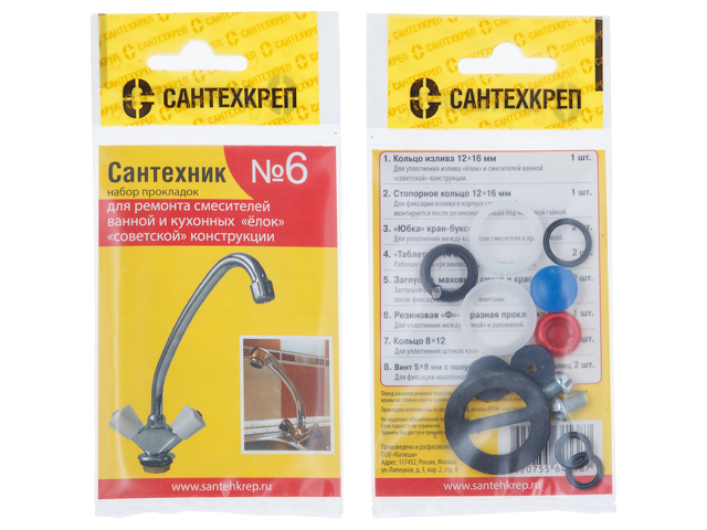 Набор прокладок "Сантехник №6" (Набор прокладок для ремонта смесителя) (Сантехкреп)