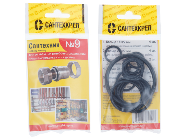 Набор прокладок "Сантехник №9" (Набор колец для разъемных резьбовых соединений типа "американка") (Сантехкреп)