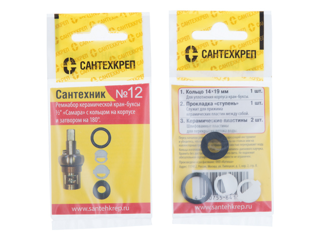Набор прокладок "Сантехник №12" (Набор для ремонта керамической кран-буксы 1/2) (Сантехкреп)