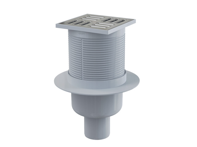Сливной трап 105х105/50, подводка - прямая, решетка - нержавеющая сталь, гидрозатвор - комбиниров (Alcaplast)