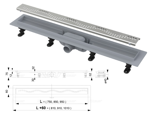 Водоотводящий желоб с порогами для перфорированной решетки (Simple), Alcaplast