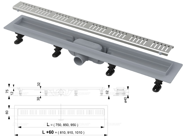 Водоотводящий желоб с порогами для перфорированной решетки (Simple), Alcaplast