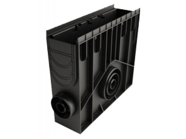 Песколовка> STANDART объединяет водоотвод с линейной канализацией, имеет корзину с высокими стенками (h=435мм), специальными щелями для задержки твердого мусора (песок, листья, ветки, бумага и пр.).