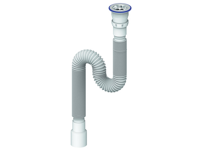 Cифон гофрированный 1200 мм с прикручивающимся выпуском 1 1/2" (40) с винтом 6х70 с нержавеющей чашкой 40х40/50