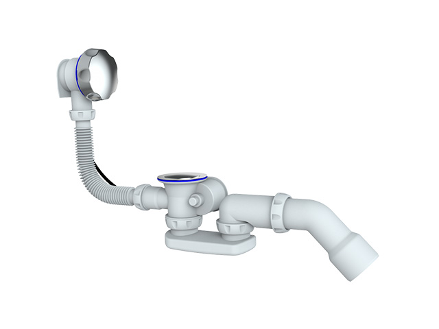 Сифон для ванны и глубокого поддона автомат с переливом и отводом д.40х 40/50, Unicorn (Сифон 1 1/2" для ванны с выпуском и переливом)