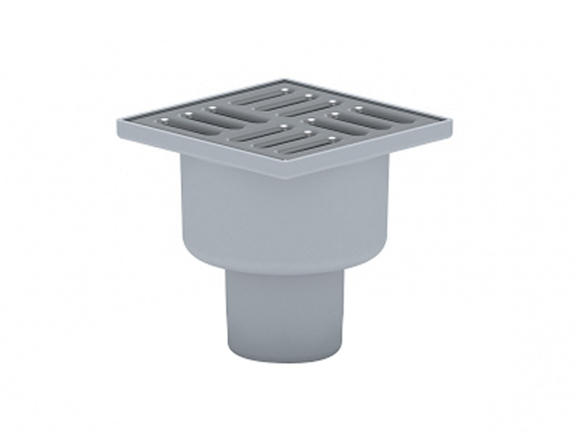 Сливной трап верт. 50 TQ5202 сух.затв., реш.нерж.. 100х100 мм, сер. РТП (Для внутренней канализации) (РосТурПласт)