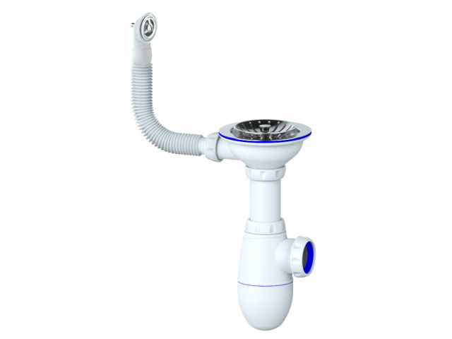 Сифон для кухни с чашкой D112, с круглым переливом (пластик), Unicorn (Сифон с большой горловиной) купить в Минске: