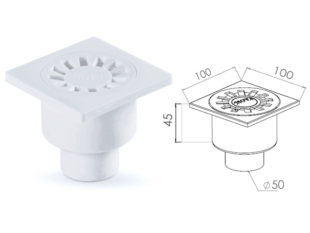 Сливной трап вертикальный D 50 решетка пласт. 100х100 мм, NOVA