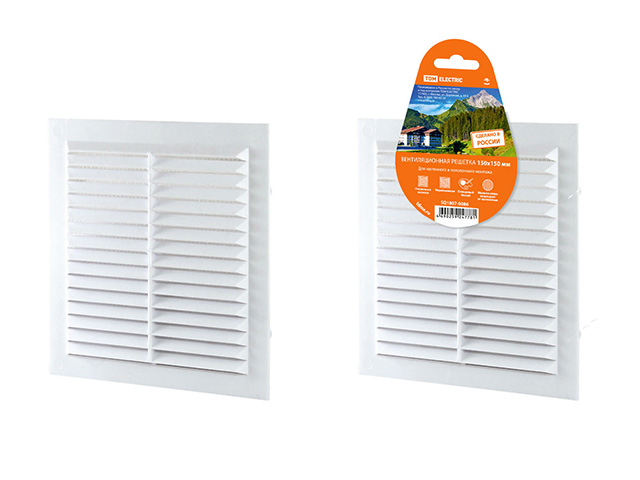 Решетка вентиляционная неразъемная с москитной сеткой, бел. 150х150 TDM