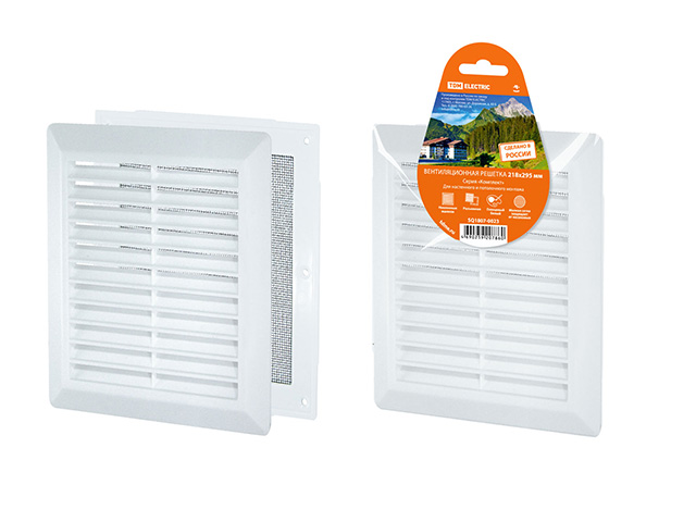 Решетка вентиляционная разъемная с москитной сеткой, наклонные жалюзи, 218х295 TDM