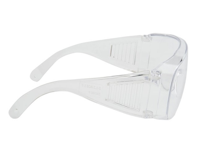 открытые поликарбонатные, боковая и надбровная защита. Надеваются поверх корригирующих очков