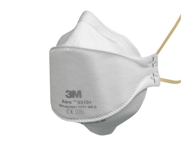 AURA 9300+. Складной трёхпанельный дизайн, перфорированная верхняя панель, дополнительный язычок на нижней панели, новая технология фильтрации, облегчающая дыхание, двойные резинки оголовья, носовое уплотнение, скрытый носовой зажим. Защита от пыли и туманов.