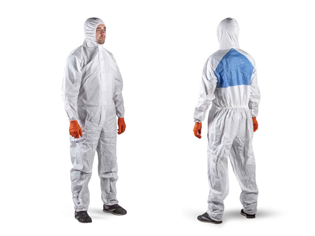 Эластичные манжеты и низ брюк. Двусторонняя застёжка-молния из нейлона с защитным клапаном. На спине - вставка из <дышащего> материала (SMS) для лучшей циркуляции воздуха. Индивидуальная упаковка. Размеры: M, L, XL, XXL. В коробке - 40 шт."