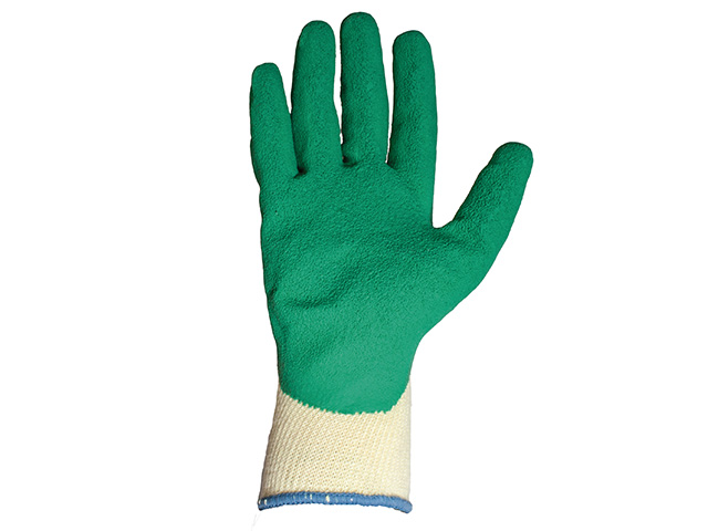 "Защитные промышленные перчатки.Бесшовная вязаная перчатка (вязка 10) из поликоттона. Эластичная манжета надёжно удерживает перчатку на запястье. Непокрытая тыльная сторона ладони обеспечивает комфорт в использовании и хороший воздухообмен. Высокая устойчивость к проколам. Высокая устойчивость к изнашиванию и порезам. Рельефное покрытие из натурального каучука на ладони обеспечивает отличный захват как сухих, так и мокрых предметов.Размеры: 8/M, 9/L, 10/XL. Цвет - желтый/зеленый. По 12 пар в упаковке, в коробке - 120 пар."