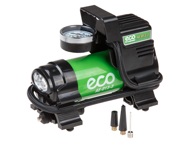 Компрессор автомобильный ECO AE-013-3 (35 л/мин, 10bar, 130Вт, 12В) (12В, 130Вт, 10bar, 35 л/мин, фонарь, сумка)